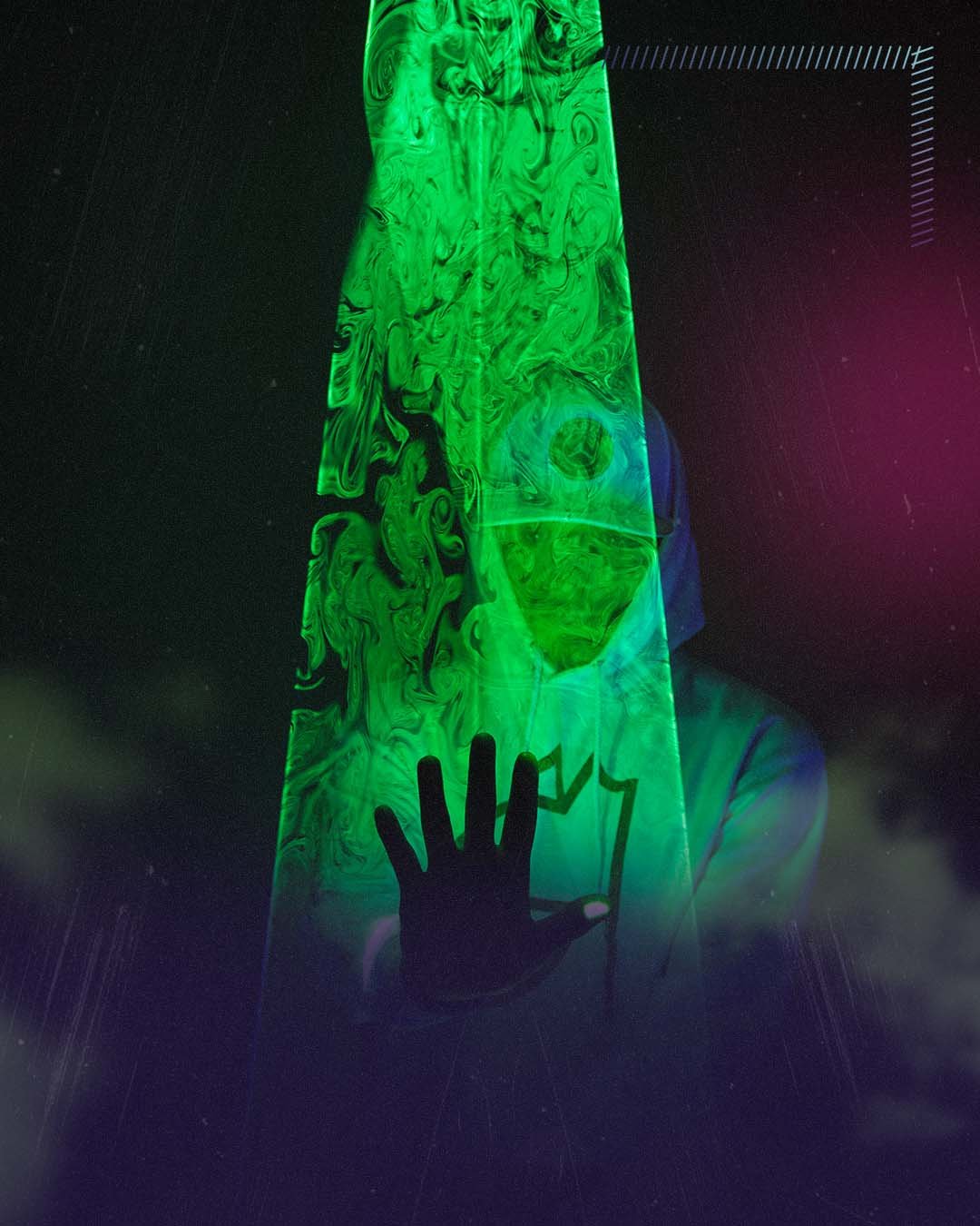 Sur une plateforme de verre, entre ombre et lumière, Nahuel Parra "DaPuma" danse avec l’énergie pure du laser. Chaque mouvement déclenche un éclat, chaque geste sculpte l’espace. En collaboration avec Diego Narvaez "NRVZ", artiste visuel multidisciplinaire, la technologie devient une extension du corps, une onde lumineuse vibrant au rythme de la musique. Luminetics est une transe visuelle, une symphonie de lumière et de mouvement où le réel et l’intangible se rencontrent.